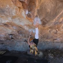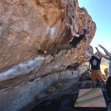 Blue Lizard Climbing and Yoga Hueco Tanks guiding on February 26, 2022, with AJ, Bradley, Caleb, and Chase