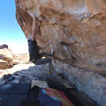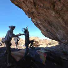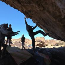 Blue Lizard Climbing and Yoga Hueco Tanks guiding on February 26, 2022, with AJ, Bradley, Caleb, and Chase