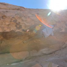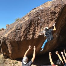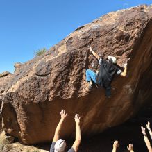 Blue Lizard Climbing and Yoga Hueco Tanks guiding on February 26, 2022, with AJ, Bradley, Caleb, and Chase
