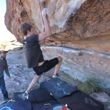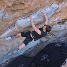 Blue Lizard Climbing and Yoga Hueco Tanks guiding on February 26, 2022, with Emily, Kevin, Mel, Tyre