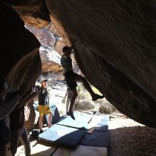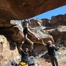 Blue Lizard Climbing and Yoga Hueco Tanks guiding on February 26, 2022, with Emily, Kevin, Mel, Tyre