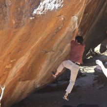 Blue Lizard Climbing and Yoga Hueco Tanks guiding on February 26, 2022, with Emily, Kevin, Mel, Tyre