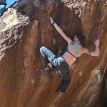 Blue Lizard Climbing and Yoga Hueco Tanks guiding on February 26, 2022, with Emily, Kevin, Mel, Tyre