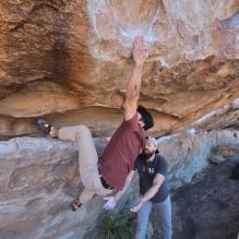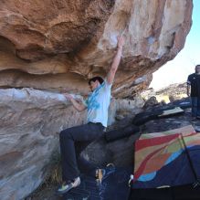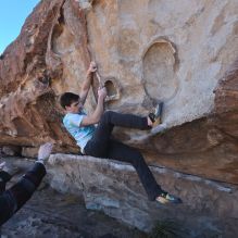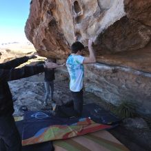 Blue Lizard Climbing and Yoga Hueco Tanks guiding on February 26, 2022, with Emily, Kevin, Mel, Tyre