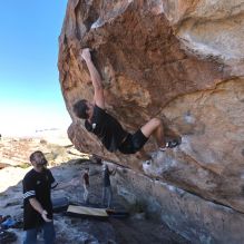 Blue Lizard Climbing and Yoga Hueco Tanks guiding on February 26, 2022, with Emily, Kevin, Mel, Tyre