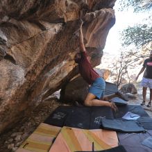 Blue Lizard Climbing and Yoga Hueco Tanks guiding on February 27, 2022, with AJ, Bradley, Caleb, and Chase