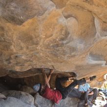 Blue Lizard Climbing and Yoga Hueco Tanks guiding on February 27, 2022, with AJ, Bradley, Caleb, and Chase