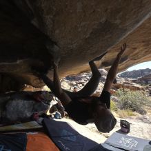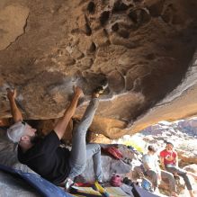 Blue Lizard Climbing and Yoga Hueco Tanks guiding on February 27, 2022, with AJ, Bradley, Caleb, and Chase