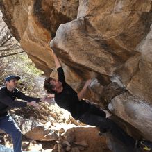 Blue Lizard Climbing and Yoga Hueco Tanks guiding on March 13, 2022, with Kevin & Sarah & Noah & Greta & Maggie, and Wendy & Trace