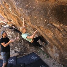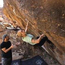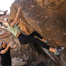 Blue Lizard Climbing and Yoga Hueco Tanks guiding on April 8, 2022, with Andrew, Cadzie, Matt, Matteo, Morgan, and Oscar