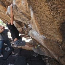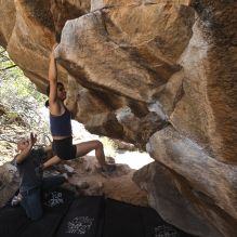 Blue Lizard Climbing and Yoga Hueco Tanks guiding on April 8, 2022, with Andrew, Cadzie, Matt, Matteo, Morgan, and Oscar |