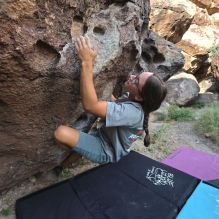 Blue Lizard Climbing and Yoga Hueco Tanks guiding on October 22, 2022, with Anna & Eric, David, Kevin, Jasmine, Justin, and Vic