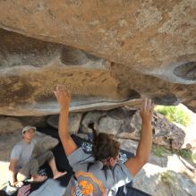 Blue Lizard Climbing and Yoga Hueco Tanks guiding on October 22, 2022, with Anna & Eric, David, Kevin, Jasmine, Justin, and Vic