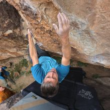 Blue Lizard Climbing and Yoga Hueco Tanks guiding on November 13, 2022, with Matt & Alex, and Nick