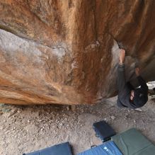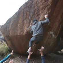 Blue Lizard Climbing and Yoga Hueco Tanks guiding on November 24, 2022, with Aaron, Cole, Jeremy, Lily, and Shane