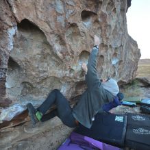 Blue Lizard Climbing and Yoga Hueco Tanks guiding on November 24, 2022, with Aaron, Cole, Jeremy, Lily, and Shane