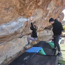 Blue Lizard Climbing and Yoga Hueco Tanks guiding on November 24, 2022, with Aaron, Cole, Jeremy, Lily, and Shane