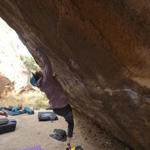 Blue Lizard Climbing and Yoga Hueco Tanks guiding on December 4, 2022, with Emily & Joey, Jamie & Kyle, Lisa & Dan, and Nicole & Chris