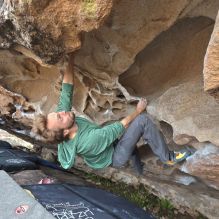 Blue Lizard Climbing and Yoga Hueco Tanks guiding on December 4, 2022, with Emily & Joey, Jamie & Kyle, Lisa & Dan, and Nicole & Chris