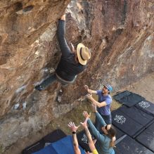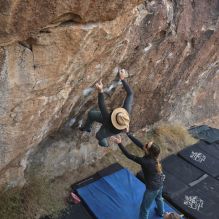 Blue Lizard Climbing and Yoga Hueco Tanks guiding on December 4, 2022, with Emily & Joey, Jamie & Kyle, Lisa & Dan, and Nicole & Chris