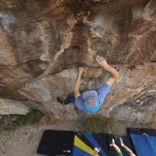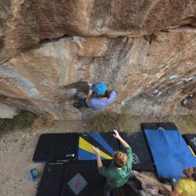 Blue Lizard Climbing and Yoga Hueco Tanks guiding on December 4, 2022, with Emily & Joey, Jamie & Kyle, Lisa & Dan, and Nicole & Chris