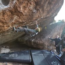 Blue Lizard Climbing and Yoga Hueco Tanks guiding on December 16, 2022, with Emma, Ethan, Isaac, Keith, and Nathan