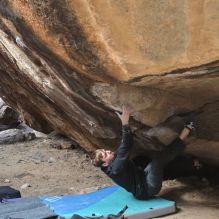 Blue Lizard Climbing and Yoga Hueco Tanks guiding on December 16, 2022, with Emma, Ethan, Isaac, Keith, and Nathan
