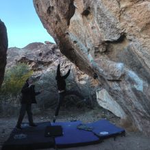Blue Lizard Climbing and Yoga Hueco Tanks guiding on December 17, 2022, with Emma, Ethan, Isaac, Keith, and Nathan