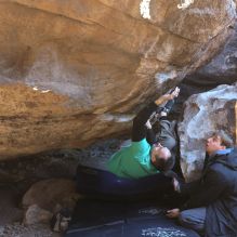 Blue Lizard Climbing and Yoga Hueco Tanks guiding on December 17, 2022, with Emma, Ethan, Isaac, Keith, and Nathan