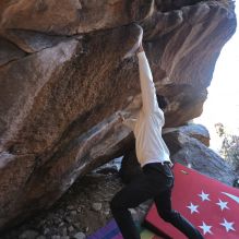 Blue Lizard Climbing and Yoga Hueco Tanks guiding on December 20, 2022, with Bryan, Judith, Jeanette & Lynnette, Luke, Shi Hui, and Vanessa