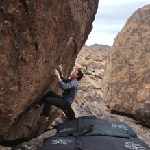 Blue Lizard Climbing and Yoga Hueco Tanks guiding on January 1, 2023, with Christian, Ellia, Micah, and Yoli |