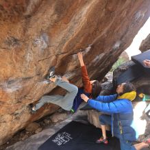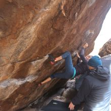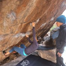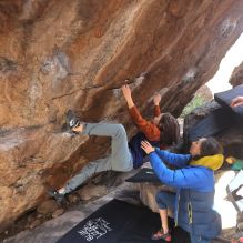 Blue Lizard Climbing and Yoga Hueco Tanks guiding on January 1, 2023, with Christian, Ellia, Micah, and Yoli |