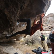 Blue Lizard Climbing and Yoga Hueco Tanks guiding on January 7, 2023, with Andrew, James, Jared, Jonah & Griffin, Sam, and Ty