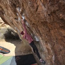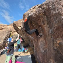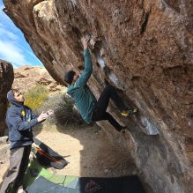 Blue Lizard Climbing and Yoga Hueco Tanks guiding on January 15, 2023, with Anthony, Fern, Ginger, Greg, Joanie, and Sophie & Kieran