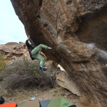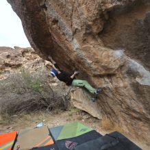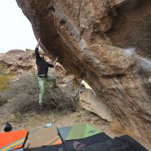 Blue Lizard Climbing and Yoga Hueco Tanks guiding on January 15, 2023, with Anthony, Fern, Ginger, Greg, Joanie, and Sophie & Kieran