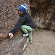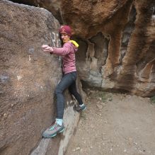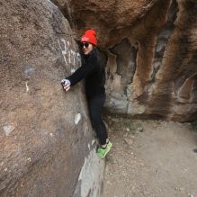 Blue Lizard Climbing and Yoga Hueco Tanks guiding on January 15, 2023, with Anthony, Fern, Ginger, Greg, Joanie, and Sophie & Kieran
