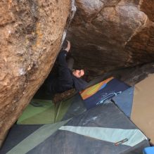 Blue Lizard Climbing and Yoga Hueco Tanks guiding on January 15, 2023, with Anthony, Fern, Ginger, Greg, Joanie, and Sophie & Kieran |