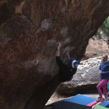 Blue Lizard Climbing and Yoga Hueco Tanks guiding on January 15, 2023, with Anthony, Fern, Ginger, Greg, Joanie, and Sophie & Kieran