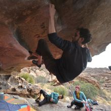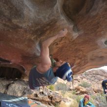 Blue Lizard Climbing and Yoga Hueco Tanks guiding on January 15, 2023, with Anthony, Fern, Ginger, Greg, Joanie, and Sophie & Kieran