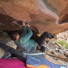 Blue Lizard Climbing and Yoga Hueco Tanks guiding on January 15, 2023, with Anthony, Fern, Ginger, Greg, Joanie, and Sophie & Kieran