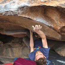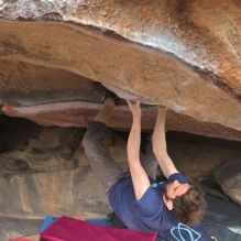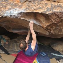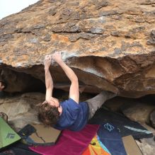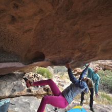 Blue Lizard Climbing and Yoga Hueco Tanks guiding on January 15, 2023, with Anthony, Fern, Ginger, Greg, Joanie, and Sophie & Kieran