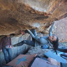 Blue Lizard Climbing and Yoga Hueco Tanks guiding on January 22, 2023 with Brian, Dave, Favia, Max, and Ozzy