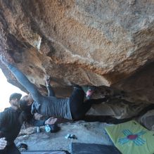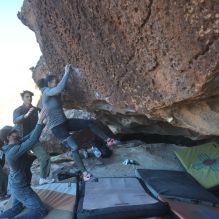 Blue Lizard Climbing and Yoga Hueco Tanks guiding on January 22, 2023 with Brian, Dave, Favia, Max, and Ozzy