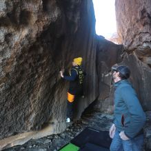 Blue Lizard Climbing and Yoga Hueco Tanks guiding on January 22, 2023 with Brian, Dave, Favia, Max, and Ozzy