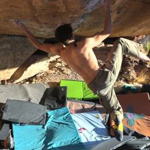 Blue Lizard Climbing and Yoga Hueco Tanks guiding on January 22, 2023 with Brian, Dave, Favia, Max, and Ozzy |