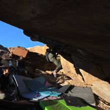 Blue Lizard Climbing and Yoga Hueco Tanks guiding on January 22, 2023 with Brian, Dave, Favia, Max, and Ozzy