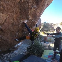 Blue Lizard Climbing and Yoga Hueco Tanks guiding on January 22, 2023 with Brian, Dave, Favia, Max, and Ozzy