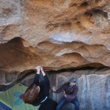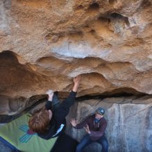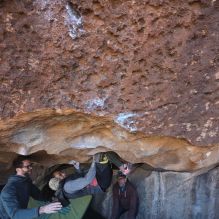 Blue Lizard Climbing and Yoga Hueco Tanks guiding on January 22, 2023 with Brian, Dave, Favia, Max, and Ozzy