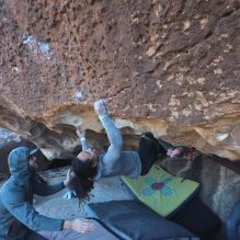 Blue Lizard Climbing and Yoga Hueco Tanks guiding on January 22, 2023 with Brian, Dave, Favia, Max, and Ozzy