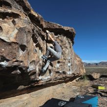 Blue Lizard Climbing and Yoga Hueco Tanks guiding on January 28, 2023, with Forrest, Jerome, Keith, and Neil